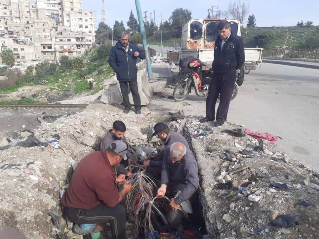 اتصالات اللاذقية تعيد تأهيل الشبكة الهاتفية في الرمل الجنوبي والغراف