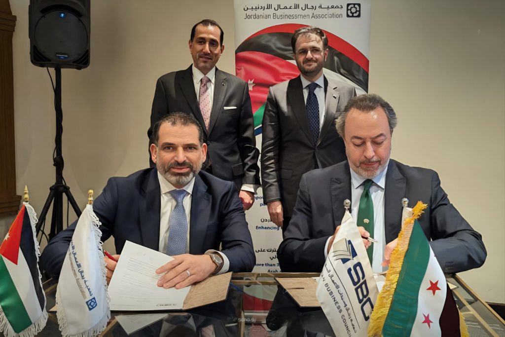 وقعت جمعية رجال وسيدات الأعمال السورية وجمعية رجال الأعمال الأردنيين، اتفاقية لإعادة تفعيل التعاون المشترك بين الجانبين، تأكيداً لمذكرة التفاهم الموقعة عام 2009.