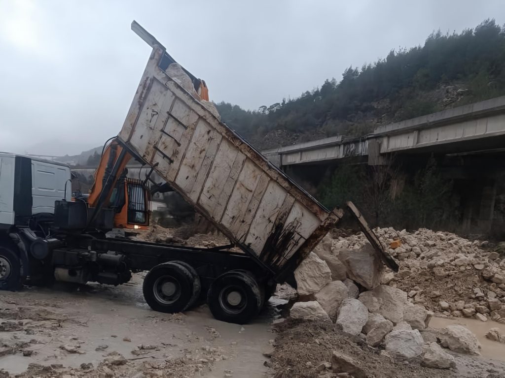 كما يجري ترحيل نواتج الحفر من الحجر للاستفادة منها في مواقع أخرى ضمن المشروع، حيث يُعاد استخدامها في إنشاء التحويلة المرورية عند الجسر B46 عند الكيلومتر 135+50، وتتزامن هذه الأعمال مع تنفيذ عمليات تسوية وقشط للتربة في موقع التحويلة باستخدام البلدوزر تمهيداً لاستكمال الأعمال الإنشائية.
