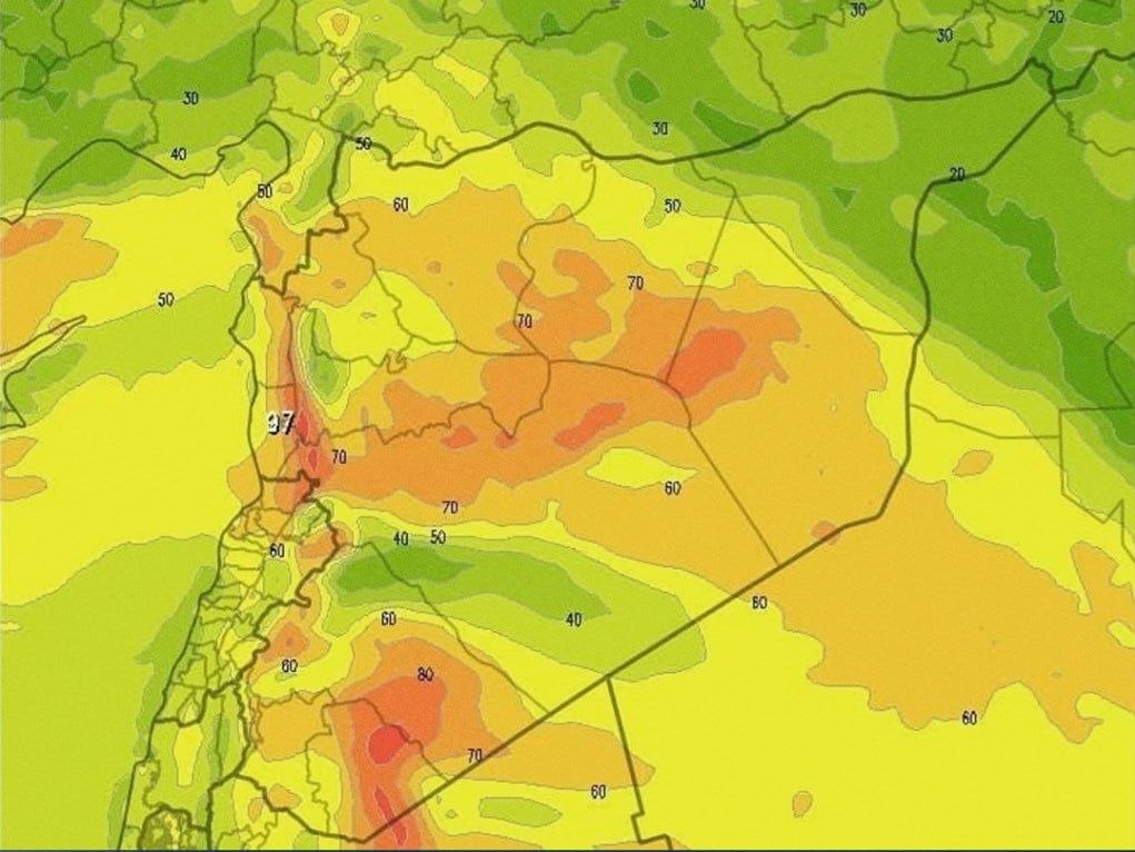 وأكدت أيضاً تسجيل هبات رياح تتراوح سرعتها بين 65 و80 كم/ساعة في دمشق وريفها ودرعا والقنيطرة وطرطوس واللاذقية، إضافة إلى باقي مناطق حماة وحمص ودير الزور وجنوب الرقة، ما يستدعي توخي الحذر، خاصة في المناطق المكشوفة وعلى الطرقات.