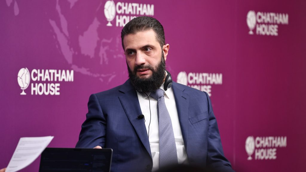 شارك الرئيس أحمد الشرع في جلسة حوارية ضمن أعمال المعهد الملكي للشؤون الدولية “تشاتام هاوس” في العاصمة البريطانية لندن، حيث تناول خلال مداخلته أبرز الملفات السياسية الداخلية والخارجية.