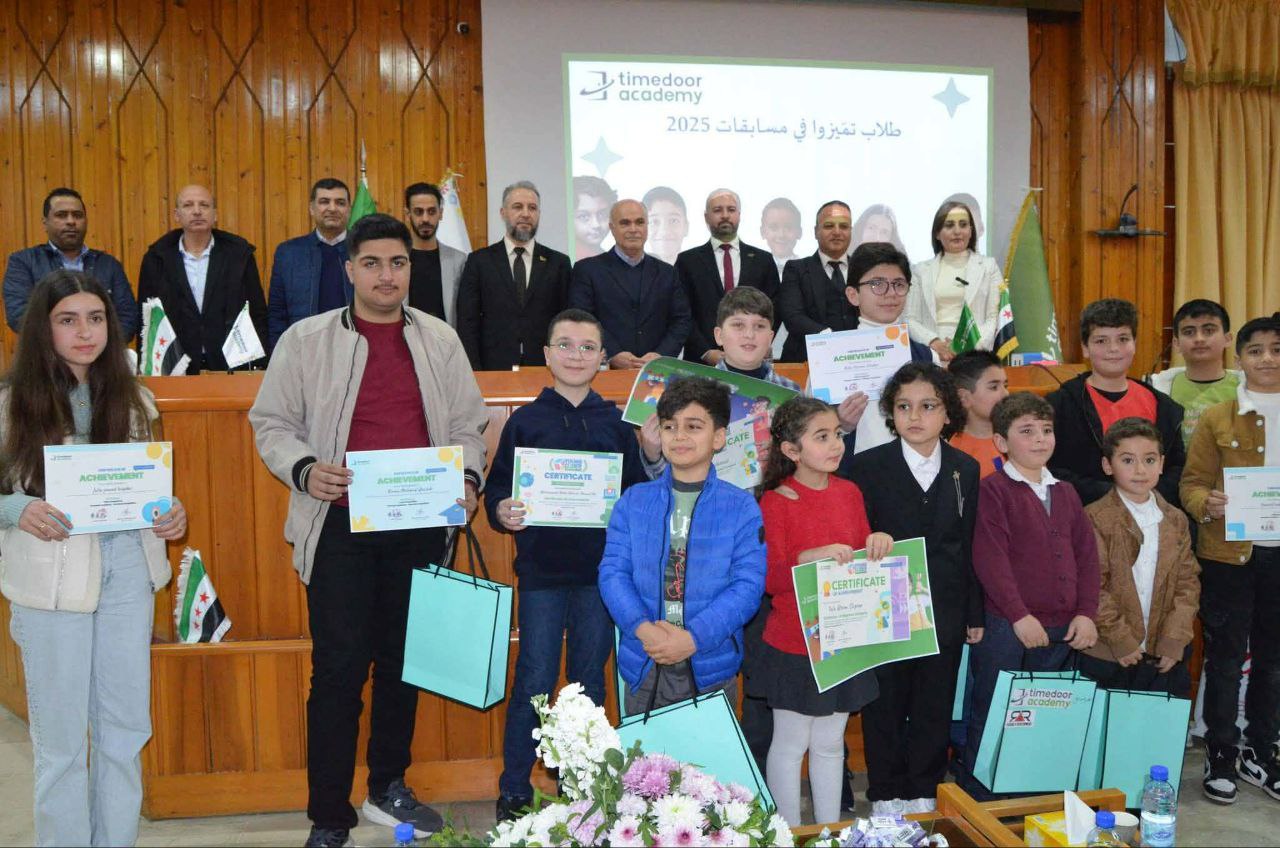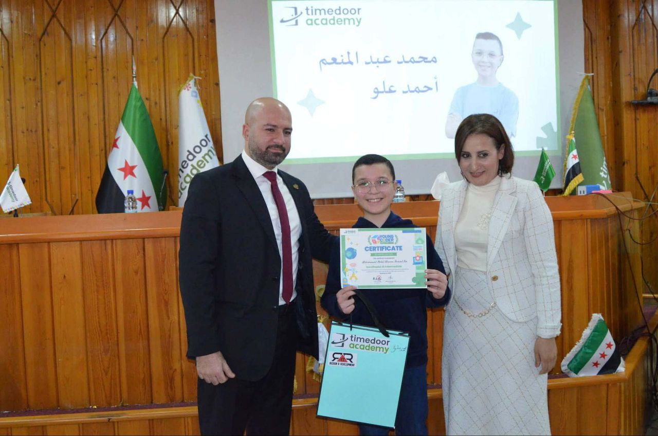 كما شهد الحفل مشاركة مؤسس “تايم دور” في مصر جمال عبد الناصر عبر فيديو، حيث أشاد بما حققه الطلاب السوريون في المسابقة الإقليمية التي أُقيمت في مصر.
