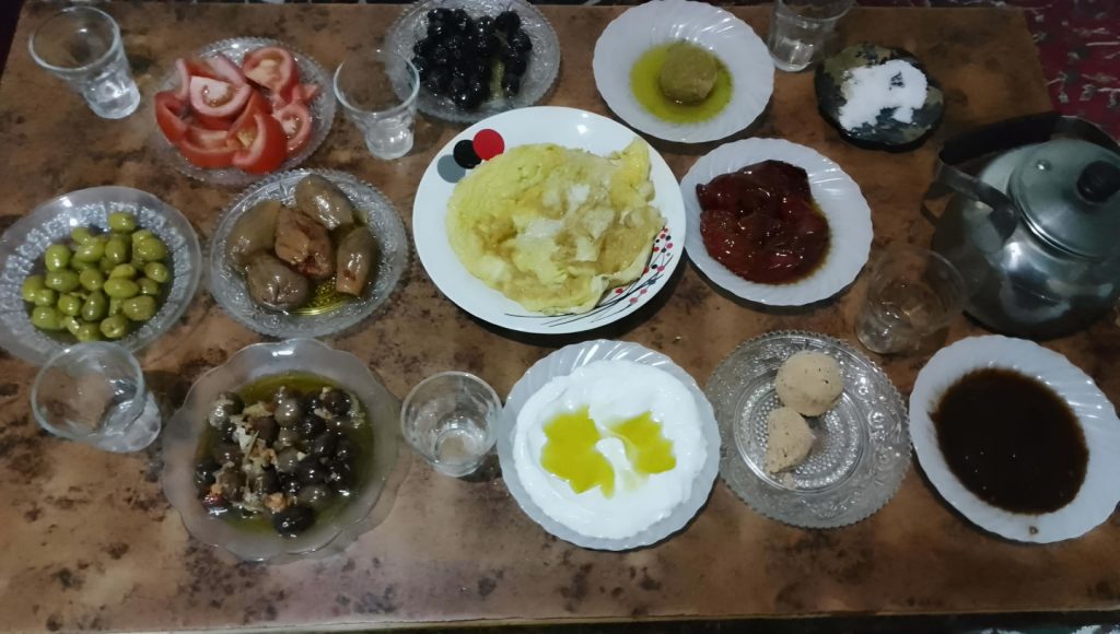 تتميز موائد السحور في الغالب بالبساطة، حيث يتركز الاهتمام على منتجات الألبان والأجبان الطازجة، إلى جانب الزيتون الذي لا يغيب عن المشهد، كما تزين المائدة اللبنة البلدية والجبنة المشللة، إضافة إلى الأطعمة الخفيفة التي تمد الجسم بالطاقة، كالخبز الطازج وبعض المعجنات، ولا ننسى طبعاً المكدوس والبيض، اللذين يشكلان ثنائياً تقليدياً في وجبة السحور.
