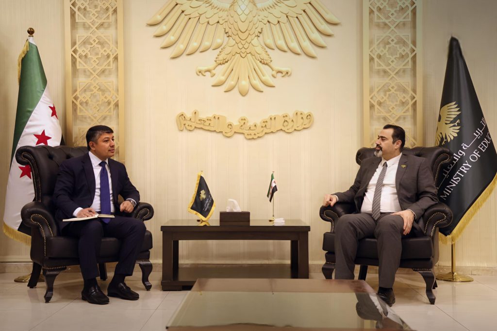 بحث وزير التربية والتعليم محمد عبد الرحمن تركو، مع القائم بأعمال سفارة جمهورية أذربيجان في دمشق ألنور شاه حسينوف سبل تعزيز التعاون المشترك في مجال التعليم المهني والتقني بين البلدين.