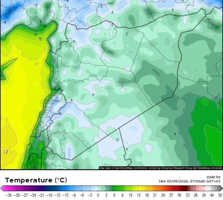 حذرت دائرة الإنذار المبكر والتأهب في وزارة الطوارئ وإدارة الكوارث من حدوث الصقيع فجر يوم غد الإثنين على مرتفعات الساحل التي تزيد عن 500 متر.