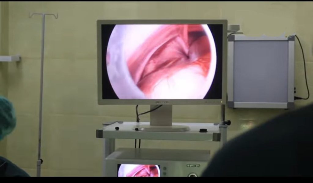 وخلال العمل الجراحي تبين وجود كيس فتق يحتوي جزءاً من الكبد، حيث جرى إغلاق كيس الفتق وإعادة محتوياته إلى جوف البطن وفق الأصول الجراحية، ثم إصلاح الفتق.