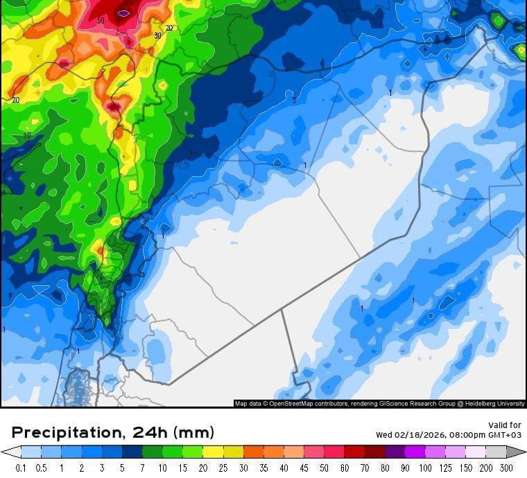 أصدرت دائرة الإنذار المبكر والتأهب في وزارة الطوارئ وإدارة الكوارث تحذيراً جوياً يفيد بتأثر البلاد يوم الأربعاء 18 شباط بحدوث هبات رياح قوية إلى عاصفة، مصحوبة مع أمطار غزيرة على المناطق الساحلية وشمال غرب البلاد وأجزاء من المنطقة الوسطى، وبحر عالي الخطورة مع ارتفاع أمواج لأكثر من 3.5 أمتار.