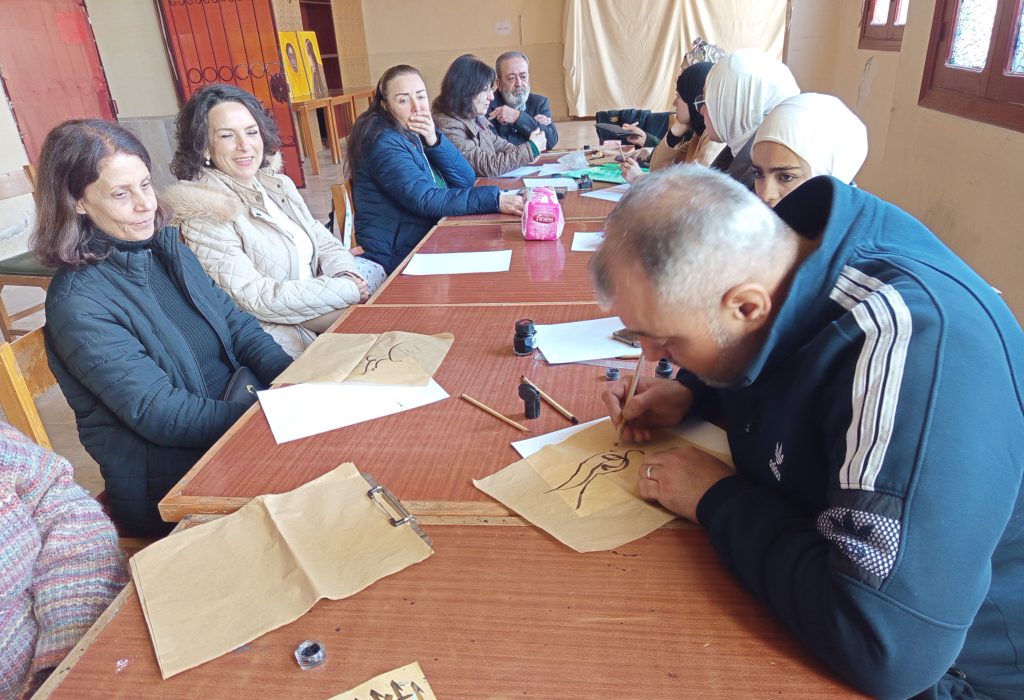 من جهته، الخطاط الأستاذ عامر الليوا حدثنا عن ورشة العمل التي أقامها، مشيراً إلى أنها عبارة عن درس مباشر للخطّ العربي لشرح بعض الأسرار وتفاصيل بناء كتلة خطية للحرف نفسه، وكيف نهيئ الشكل مع المضمون لكتابة العبارة، لتصبح لوحة فنية وليست مجرد كتابةٍ أو نقشٍ حروفي على اللوحة.