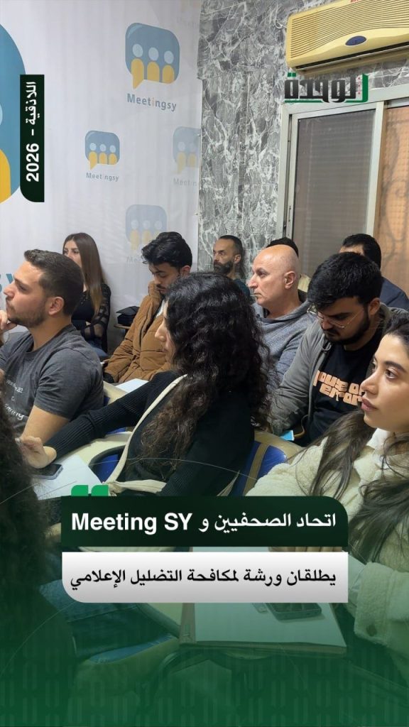 نيوميديا الوحدة اتحاد الصحفيين و مؤسسة meeting sy يطلقان ورشة لمكافحة التضليل الإعلامي نشر في: 2026-04-19 مشاركة إضافة تصحيح X إرسال تصحيح لـ: اتحاد الصحفيين و مؤسسة meeting sy يطلقان ورشة لمكافحة التضليل الإعلامي شارك هذه المقالة Facebook Threads نسخ الرابط لا توجد تعليقات اترك تعليقاًلن يتم نشر عنوان بريدك الإلكتروني. الحقول الإلزامية مشار إليها بـ *التعليق * الاسم * البريد الإلكتروني * احفظ اسمي وبريدي الإلكتروني في هذا المتصفح لاستخدامهما في المرة القادمة التي أعلّق فيها. الأكثر قراءة للأسر الأشد حاجة.. التجارة الداخلية تسلّم مواد غذائية مُصادرة للشؤون الاجتماعية في اللاذقية إيطاليا تقدم 3 ملايين يورو لدعم الاستجابة الصحية في سوريا توزيع أكشاك خدمية لذوي الإعاقة في اللاذقية لدعم تمكينهم الاقتصادي ثلوج موسكو الدافئة