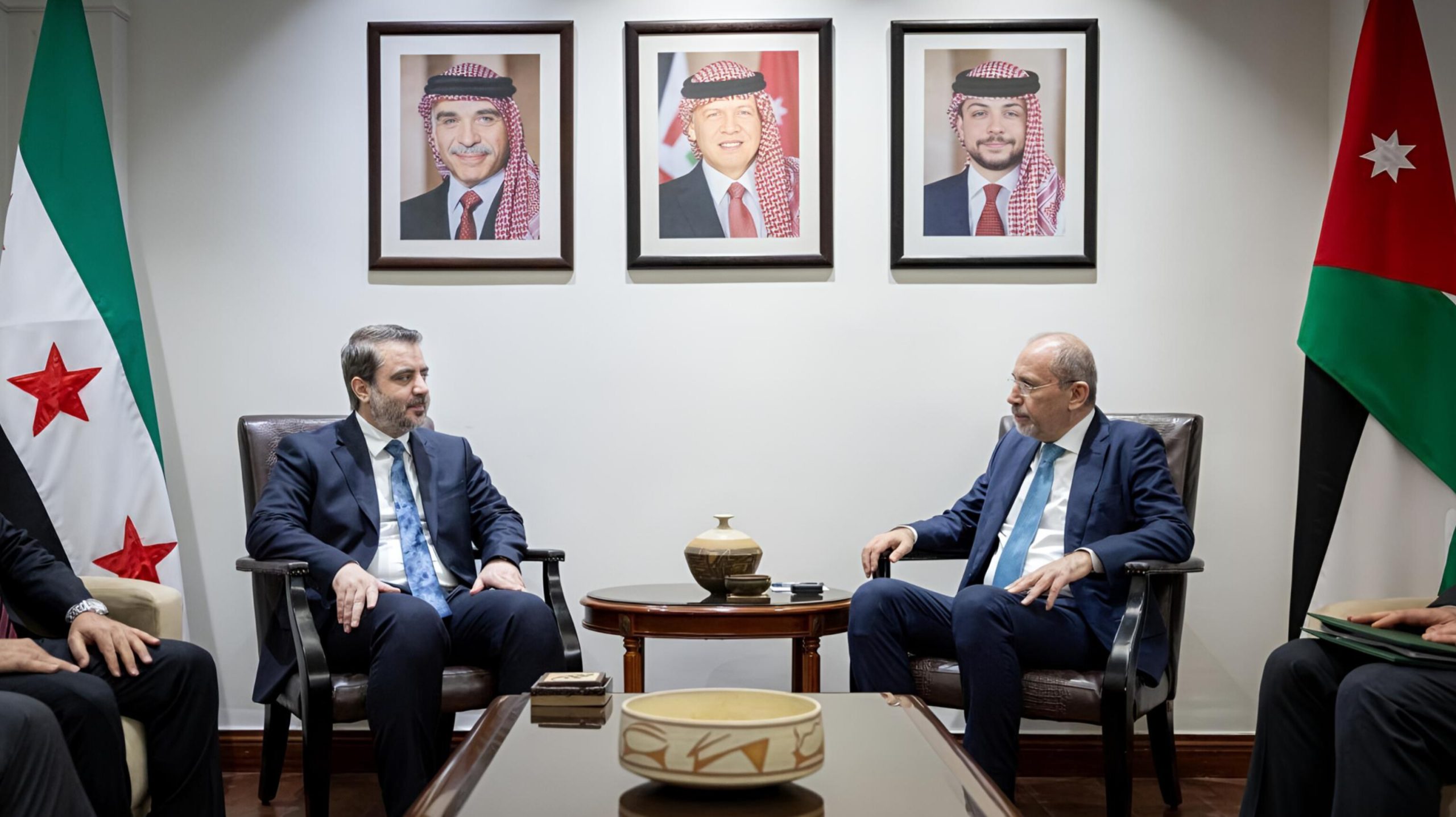 التقى وزير الخارجية والمغتربين أسعد حسن الشيباني نظيره وزير خارجية المملكة الأردنية الهاشمية أيمن الصفدي في العاصمة الأردنية عمّان، حيث شدد الوزيران على أهمية تعزيز العلاقات الثنائية بين البلدين الشقيقين، وتوسيع آفاق التعاون المشترك في مختلف المجالات.