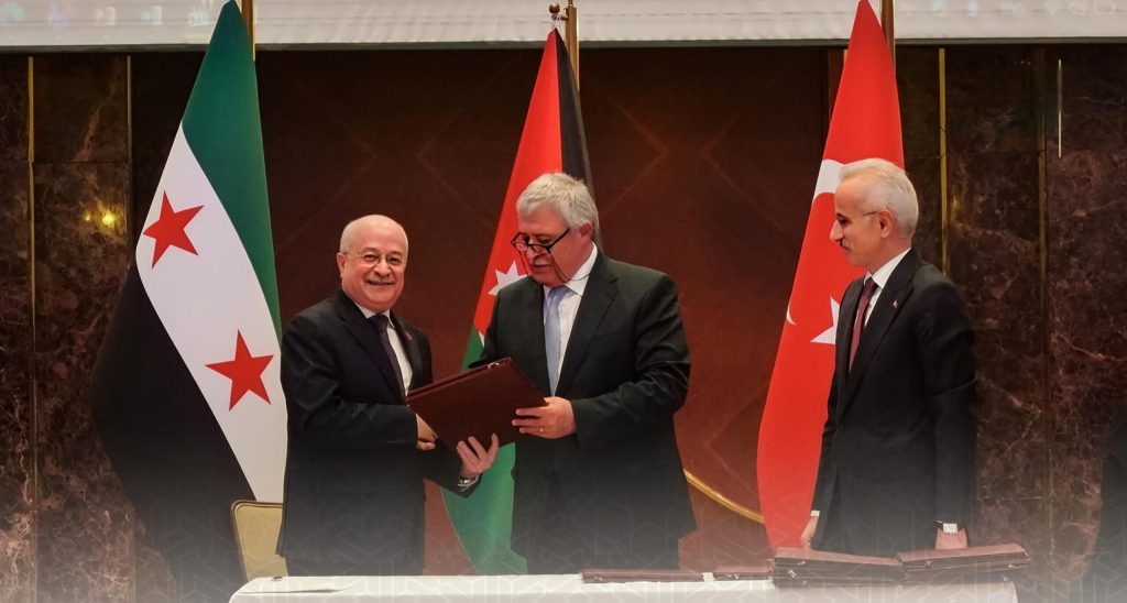 شهدت العاصمة الأردنية عمان في 8 نيسان 2026 توقيع مذكرة تفاهم ثلاثية بين وزراء النقل في سوريا والأردن وتركيا، تهدف إلى تطوير قطاع النقل البري والسككي والبحري، وفتح آفاق جديدة للتكامل الاقتصادي بين الدول الثلاث.