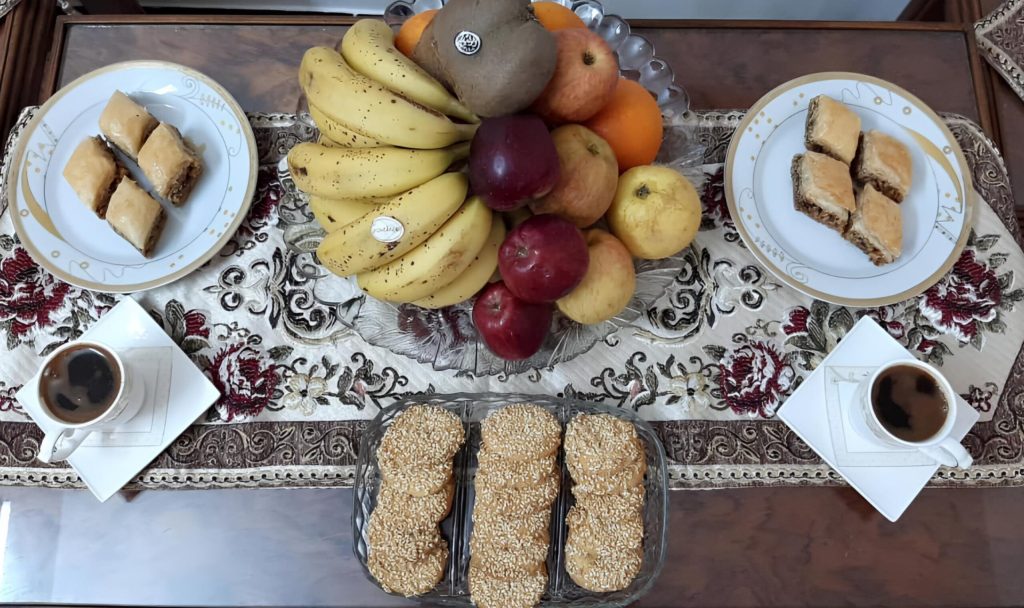 امّا بالنسبة للحلويات “فحسب الهمة والنشاط” وأردفت مروى قائلة : “هالسنة حلوياتنا كانت شغل إيدنا أقراص سيوا، معمول الجوز والفستق، الغريبة والبرازق جاهزة بس بهجة العيد بريحة المعمول أثناء الخبز وتطبيع الأقراص وصفها بالصواني”.