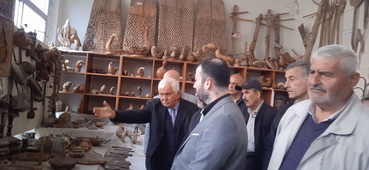 بعدها زار السادة الضيوف عدة أقسام وغرف شكلت في مجموعها سنوات من العمل الجاد والمضني للباحث برهان حيدر في الجري والبحث عن مفردات وأدوات ومخترعات لأناس مروا من هنا، ولم يكن الأمر سهلاً فكل شيء بحساب، ولم تهن عليه ليصرف نهاية الخدمة لأجلها مهراً لاقتنائها ولا زال الكثير في البال، وغرف المتحف تضيق بالمحتويات من نقوش طينية للمساكن بالبيوت إلى مستلزمات المعيشة وأدواتها من: سلال وصواني قش وملاعق خشبية وعنابر لخزن الحبوب، ومصابيح بأشكال.. إلى أدوات الزراعة والحصاد ومواسم القطاف وجني المحاصيل، بالإضافة إلى لباسهم صغاراً وكباراً وفي جميع المناسبات والأفراح وغيرها من مخترعات حسب حاجاتهم ولوحات فنية نسجت بإتقان من المواد الطبيعية وخيوطها وعلى امتداد لتكون آلاف المقتنيات ولا زال المشوار طويلاً، وكل هذا وذاك بشرح وتفصيل من الباحث حيدر مع أهازيج وأمثال شعبية وبعض الفكاهات، التي أضفت للأجواء الفرح والبهجة وللسادة الضيوف، وفي نهاية المطاف علقت بطاقة تكريم من وزير الثقافة السابق محمد الأحمد لإبداعاته وإنجازاته الثقافية المتميزة ضمن فعاليات مهرجان اللاذقية الثقافي الثاني 12/19 /2019
