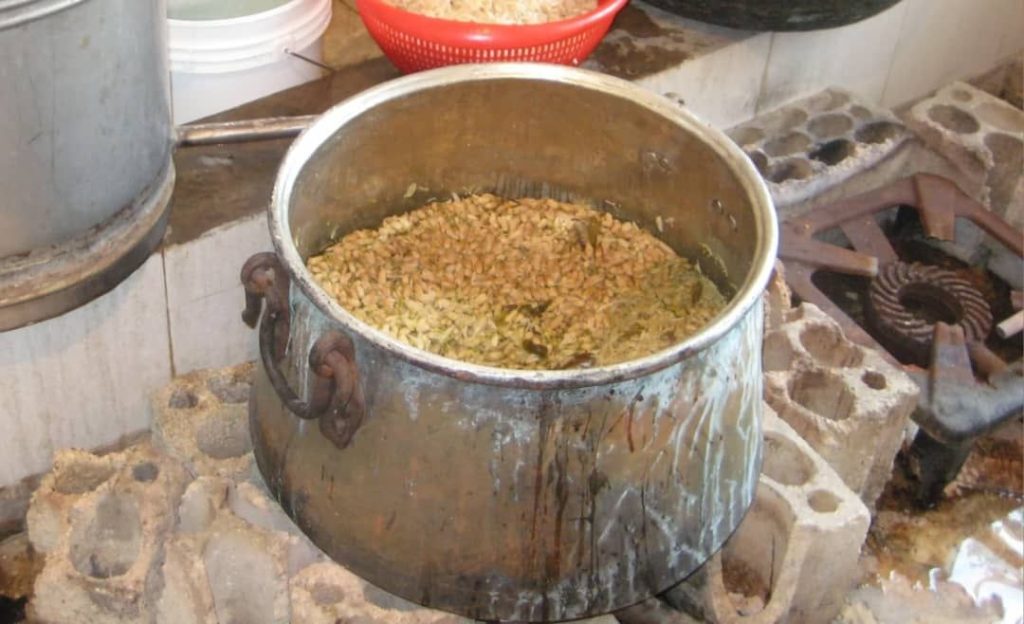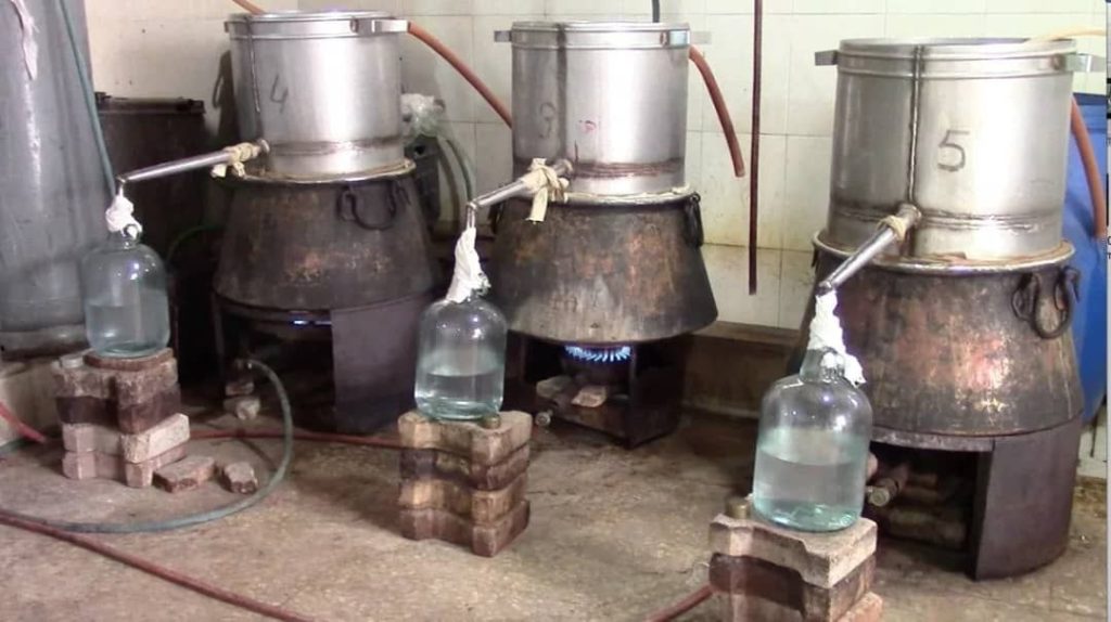 وعن مراحل العمل تقول نهلا بأنها تقف أمام جهاز التقطير الذي يعرف بـ “كلكة” تراقب تسرب قطرات الزيت الثمينة المنسابة في الأنبوب في عملية استخلاص الزيوت والماء المقطر بمراحل تتقنها النساء وفق أدوار منسجمة ومتكاملة، وينقل الزيت الذي تم الحصول عليه في قوارير صغيرة الحجم.