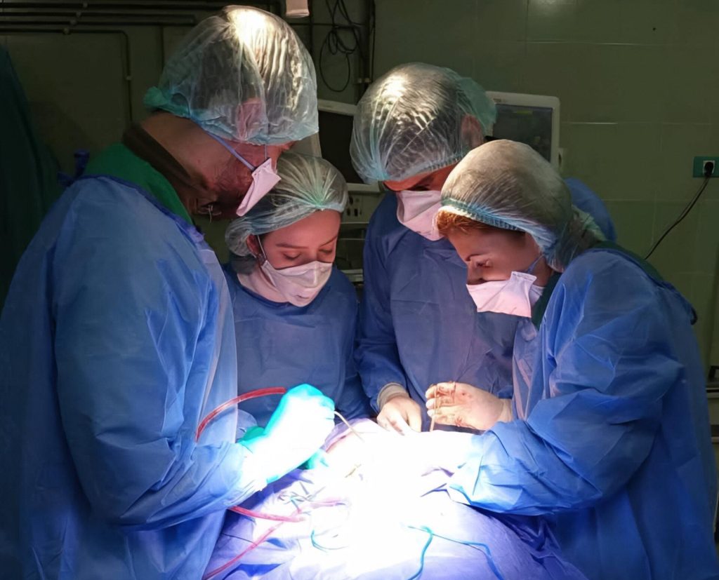 الفريق الطبي اخصائية أذن أنف حنجرة الدكتورة ميس سودان، رئيس الأطباء المقيمين (سنة رابعة) د. علي غانم، والمقيم (سنة خامسة) د. ذو الفقار البعلبكي، والمقيمة (سنة ثالثة) د. يارا خضور.